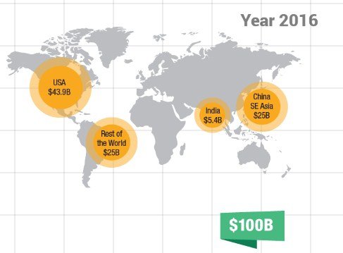 Pasar dunia untuk kerajinan telah meningkat tiga kali lipat sejak 2008 dan sekarang menjadi industri senilai $ 100 miliar. Pada 2016, hanya India yang mengekspor barang buatan tangan sebesar $ 5, naik 15% dari tahun sebelumnya. Pada periode yang sama, China dan Asia Tenggara menghasilkan lebih dari $ 25 miliar.